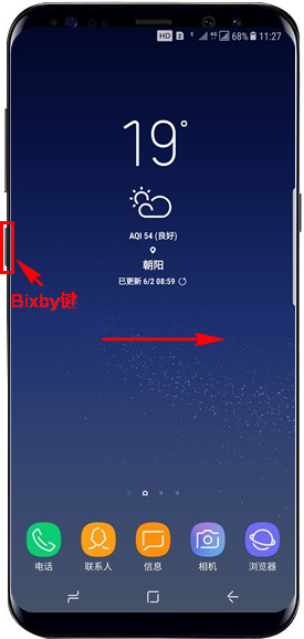 1.在主屏幕界面向右滑动屏幕,或者按下机身左侧的Bixby键。