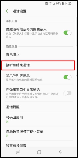 3.点击【接听和结束通话】。