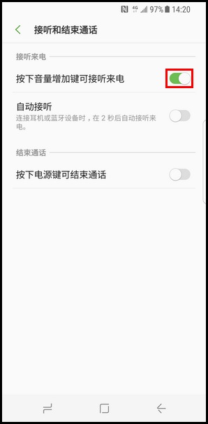 SamsungGalaxy S8 SM-G9500(7.0)如何设置按下音量增加键接听电话?