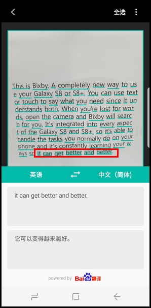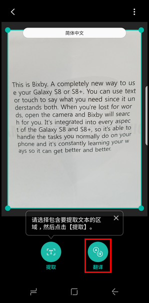 益达娱乐 Galaxy S8 SM-G9500(7.0)如何使用Bixby视觉检测并翻译文本?