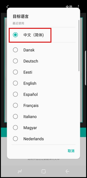 7.选择您需要翻译的语言,这里以选择【中文(简体)】为例。