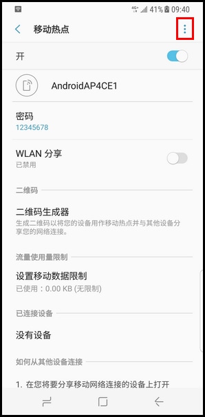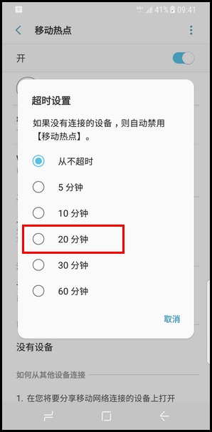 SamsungGalaxy S8 SM-G9500(7.0)如何更改移动热点超时时间?