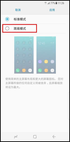 益达娱乐 Galaxy S8 SM-G9500(7.0)如何切换为简易模式?