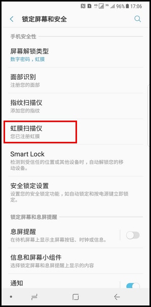 益达娱乐 Galaxy Note8 SM-N9500/N9508如何更改虹膜解锁时预览画面上的面具?(Android 7.1.1)
