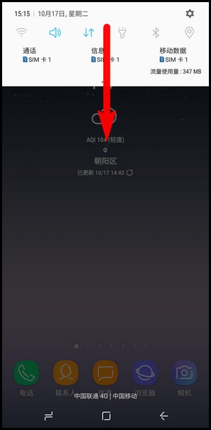 1.在主屏幕上向下滑动屏幕,打开通知面板。