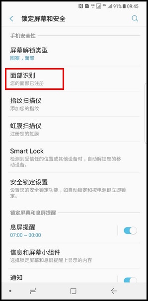 益达娱乐 Galaxy Note8 SM-N9500/N9508如何删除已注册的面部数据?(Android 7.1.1)