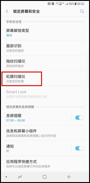 益达娱乐 Galaxy Note8 SM-N9500/N9508如何注册虹膜?(Android 7.1.1)
