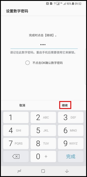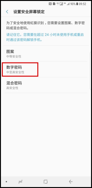5.设置安全屏幕锁定方式,这里以选择【数字密码】为例。