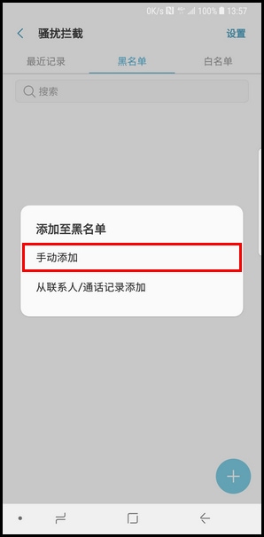 短信黑名单和来电黑名单为通用列表,添加号码后,来电和信息均会被拦截。