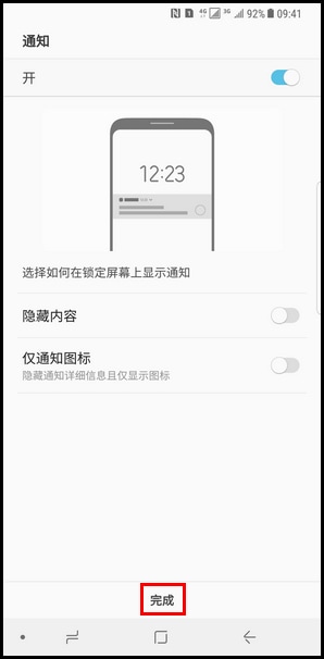 7.根据需要设置在锁定屏幕上显示通知,这里以默认设置为例,然后点击 【完成】。