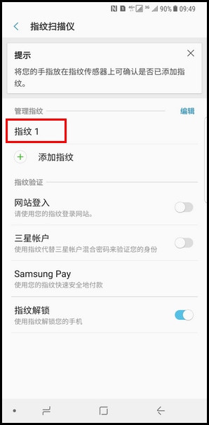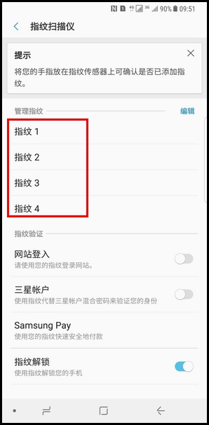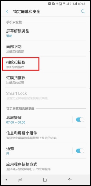 益达娱乐 Galaxy Note8 SM-N9500/N9508如何注册指纹?(Android 7.1.1)
