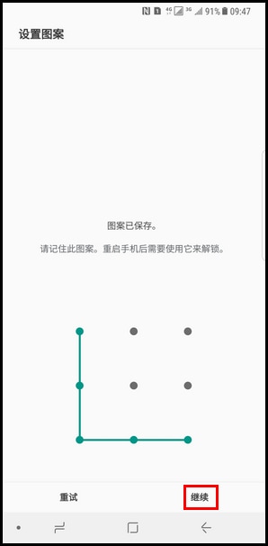 6.用手指划动连接至少四个点绘制图案后,点击【继续】。