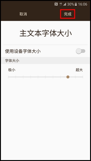 6.调节到想要的字体大小后,点击【完成】。