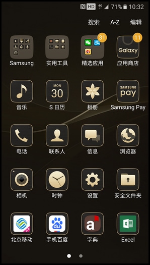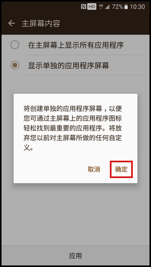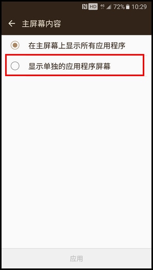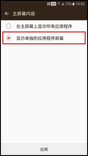 SM-G9298通过主屏幕布局设置,可以设置设备为使用独立的应用程序屏幕。应用程序屏幕上显示所有应用程序的图标,包括新安装的应用程序。主屏幕显示应用程序和小组件的快捷方式,若想使用独立的应用程序屏幕,请按以下步骤操作: