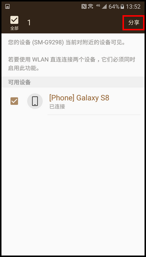 益达娱乐领世旗舰8 SM-G9298(6.0.1)如何通过WLAN直连传送图片?