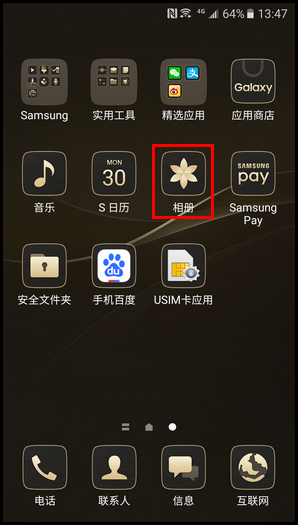 6.这里以传输照片为例,在主屏幕上点击【相册】。