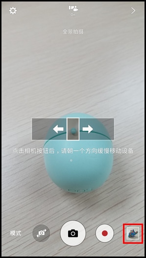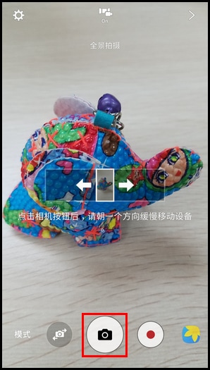 5.朝一个方向缓慢移动设备直至拍摄完成。 (注:在全景拍摄过程中,如果您想要停止拍摄,可以点击【停止】按钮,即可停止拍摄。)