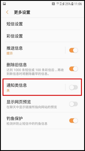 根据您收到的短信类型,将属于通知信息的内容归档到【通知类信息】,进行统一管理,比如运营商发送的信息。若想开启该功能,请按以下步骤操作:
