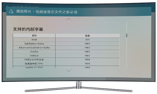 益达娱乐MU7700系列电视支持的字幕格式如下图: