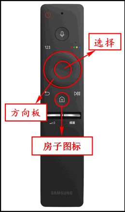 1.按电视遥控器“房子”图标。(注:文本中的按键操作均需使用电视遥控器,按键位置请查看下图。)