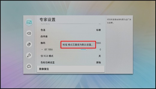 益达娱乐Q9F系列电视图像菜单调整后想要恢复,可以通过图像复位,将图像菜单恢复到默认设置。