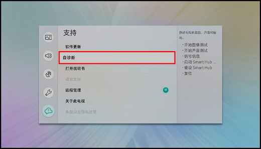益达娱乐Q9F系列电视具有自诊断声音测试功能,通过此功能可以检测电视自身声音是否出现故障,操作方法如下: