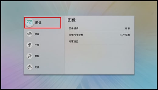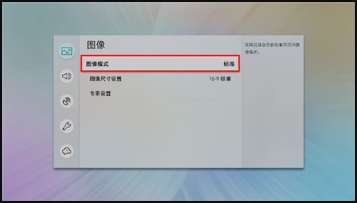 益达娱乐Q7C系列电视在图像模式中可以选择适合的观看环境,操作方法如下: