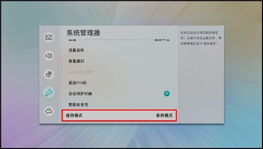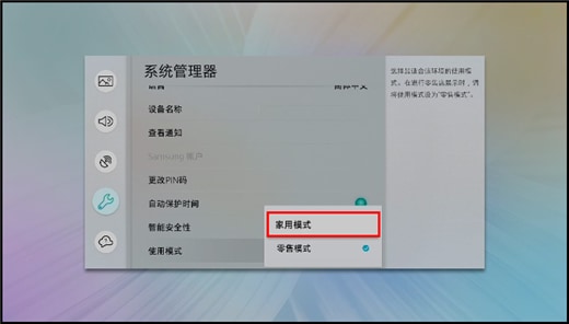 7.按【方向】键,向上选择【家用模式】,按【确认】键。