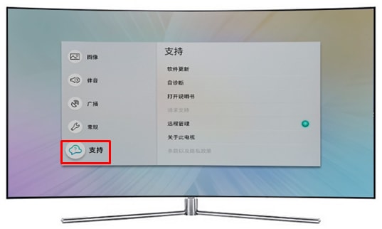 4.按【方向】键,向下选择【支持】 ,按【确认】键。